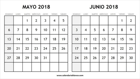 calendario de mayo y junio