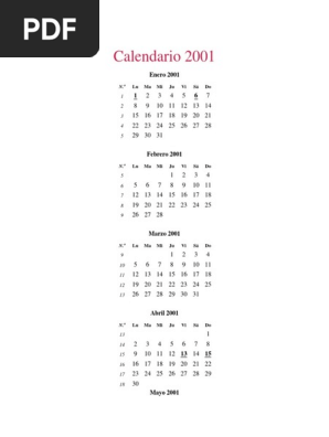 - Também é possível consultar os calendários mensais de 2001 com os números das semanas incluídos.